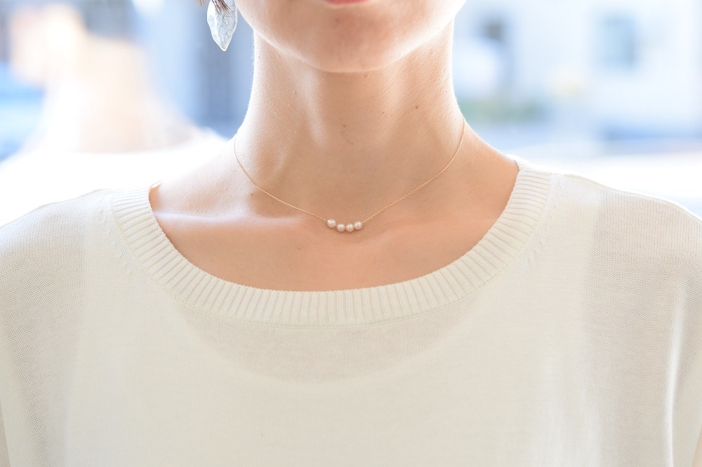 いつもよりすこしだけ、背筋をぴんとのばしてお出掛けするタイミングには、「あこやパールのネックレス」を胸元に。