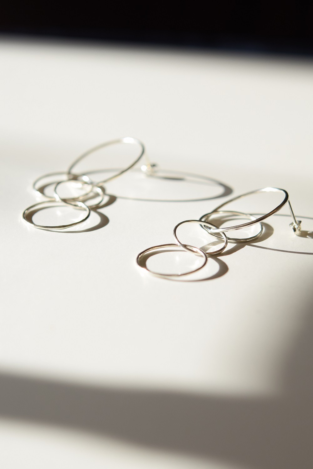 少し大きめのデザインですがひとつひとつの輪が華奢な細いラインのため、重さはさほど気になりません。