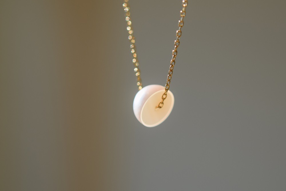 珍しい「半球のパール」をつかった美しいデザイン、yoriko mitsuhashi(ヨリコミツハシ)のパールネックレス。
