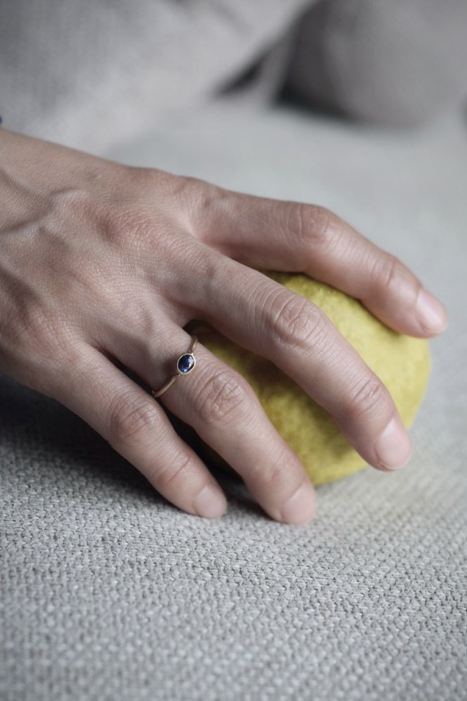 またサファイアの脇や周りには華美にダイヤをあしらったりせず、シンプルなブルーサファイアの指輪にしました