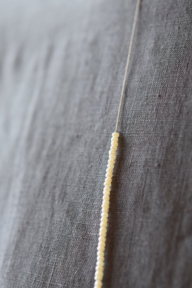 シルクコードに小さな天然石(パール)を通したロングネックレス。