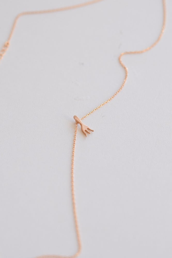 小さなフォークのモチーフが愛らしい 40cm のネックレス。