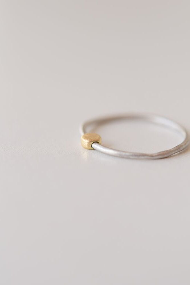 シルバーのリングにK18のしかくモチーフを通したシンプルなリング。