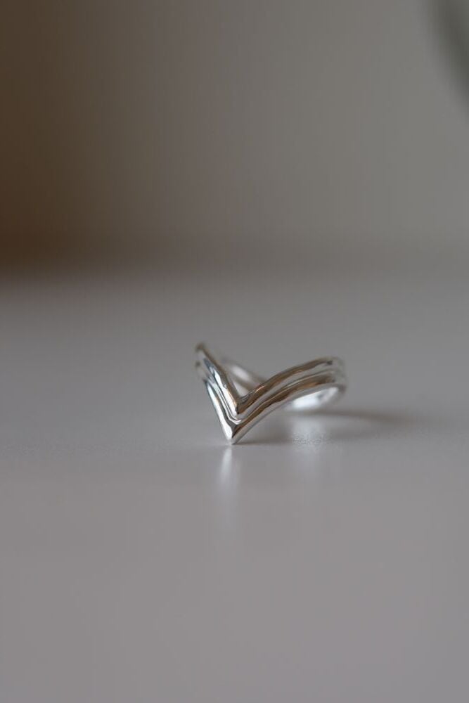 こちらは、美しい「V」ラインが特徴的な、2連リング(同じ形のリングが2個セット)。