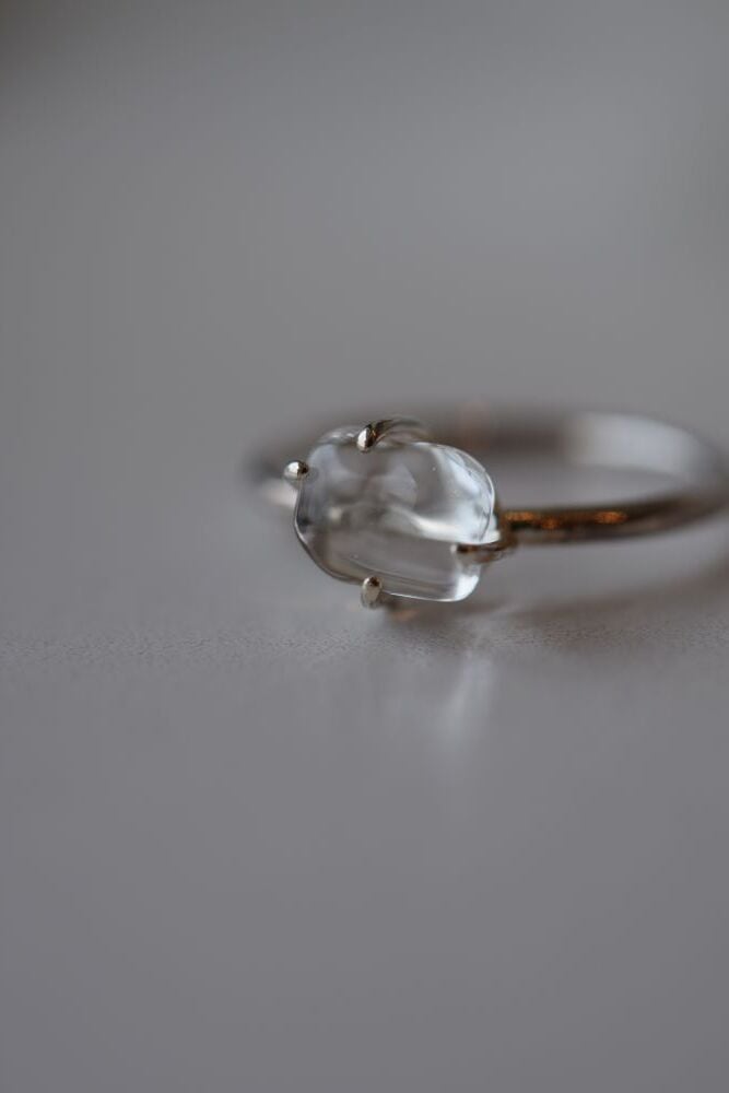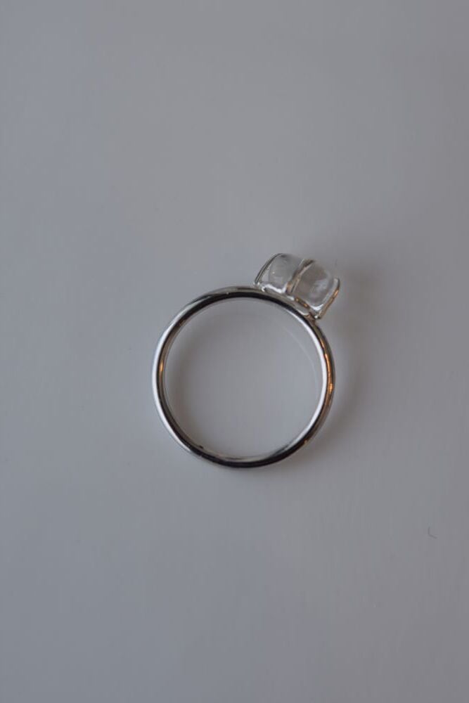 ガラスの透明感を活かし、石枠は細くシンプルに仕上げ